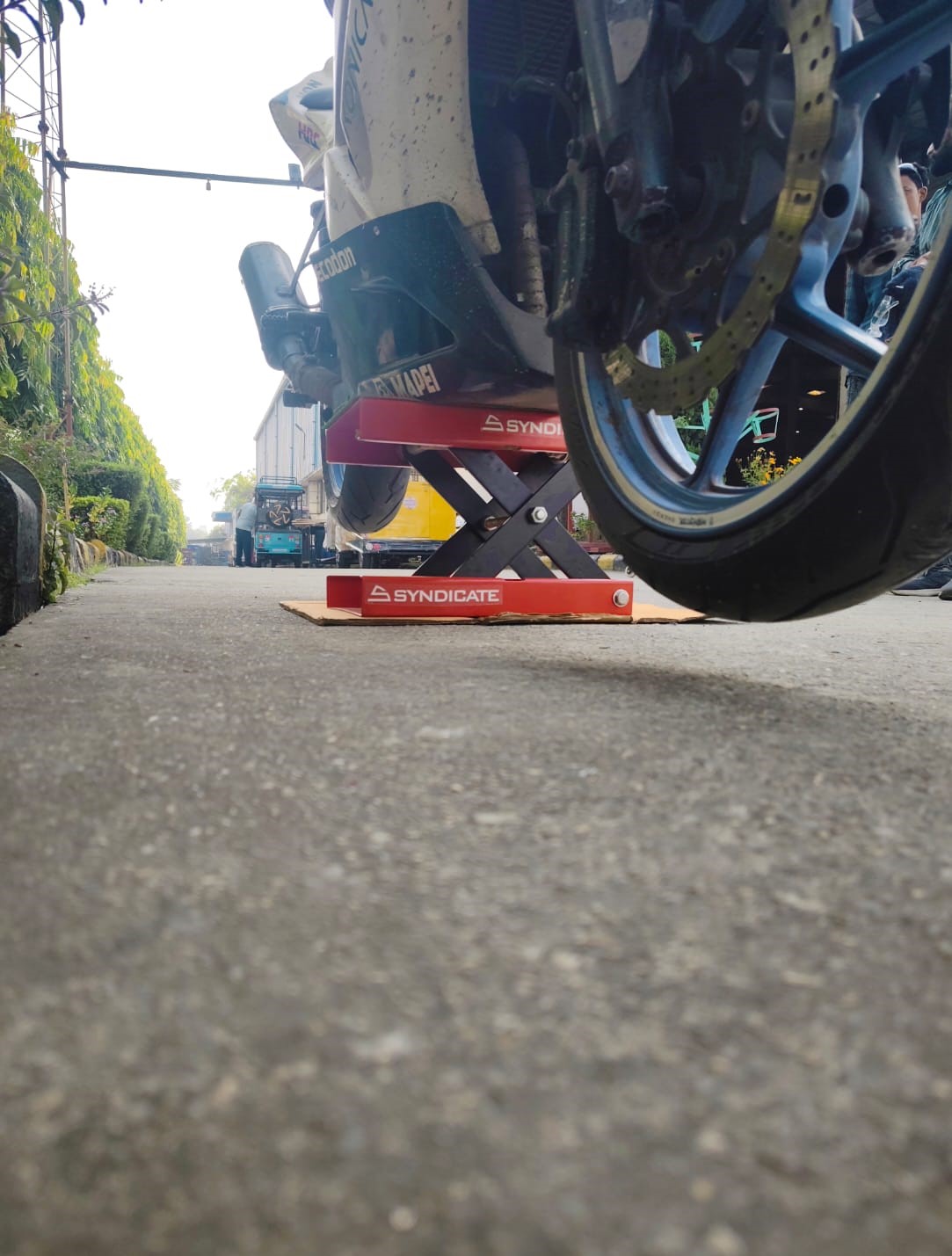 The Syndicate Motorcycle Center Jack Stand is a premium, heavy-duty lifting solution engineered for effortless motorcycle maintenance and stability. Designed for sport bikes, naked bikes, and superbikes, this jack stand allows the motorcycle to be lifted from the center for maximum balance and accessibility.