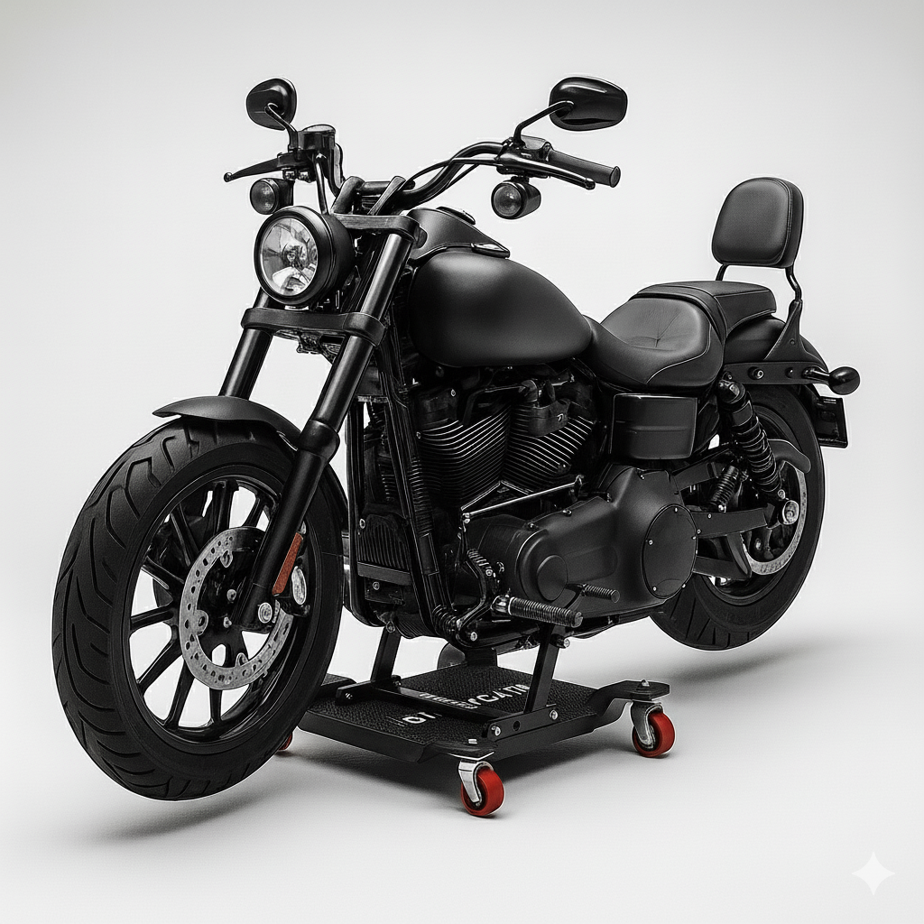Crafted with a heavy‑duty steel frame, reinforced bearing system, and anti‑slip surface, the platform combines durability with rider‑friendly functionality. Whether used in garages, detailing studios, workshops, or showrooms, this product elevates the motorcycle experience with unmatched convenience and style.