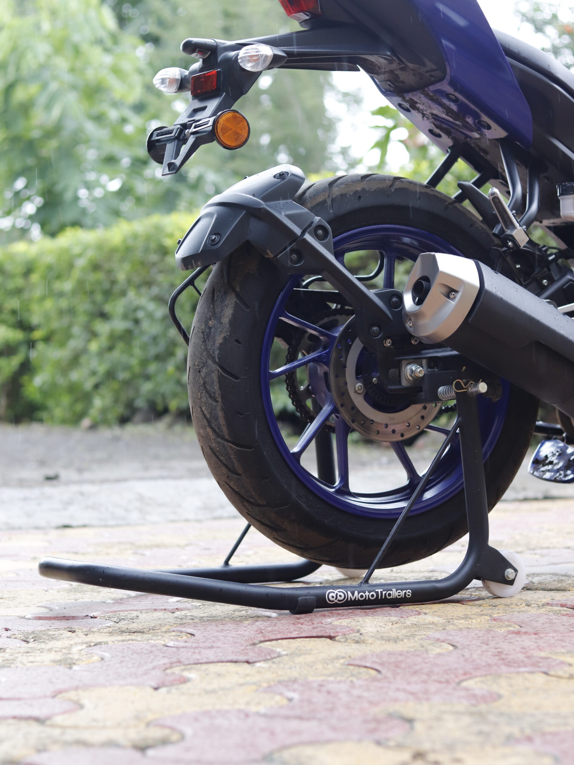- Effective: With Moto Trailers black Motorcycle Rear Paddock Stand, you will prevent dry rot or flat spots on your tires as well as prevent moisture damage from having your bike parked on concrete for long periods of time.